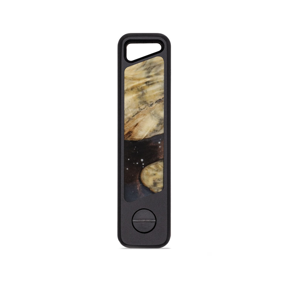 A sleek and rugged keyholder machined from a solid block of aluminum with unique inlay. It's lightweight, ultra-durable, and built to keep your keys organized without the jingle. Holds up to 4 keys in a compact, no-bulk design. Just unscrew, slide your keys on, and tighten it back up. Removable clip on reverse side.