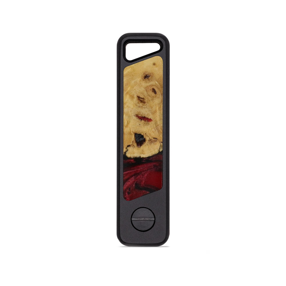 A sleek and rugged keyholder machined from a solid block of aluminum with unique inlay. It's lightweight, ultra-durable, and built to keep your keys organized without the jingle. Holds up to 6 keys in a compact, no-bulk design. Just unscrew, slide your keys on, and tighten it back up. Removable clip on reverse side.