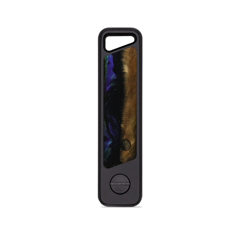A sleek and rugged keyholder machined from a solid block of aluminum with unique inlay. It's lightweight, ultra-durable, and built to keep your keys organized without the jingle. Holds up to 6 keys in a compact, no-bulk design. Just unscrew, slide your keys on, and tighten it back up. Removable clip on reverse side.