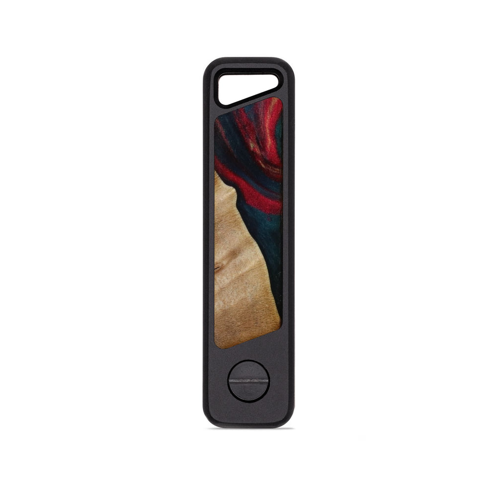 A sleek and rugged keyholder machined from a solid block of aluminum with unique inlay. It's lightweight, ultra-durable, and built to keep your keys organized without the jingle. Holds up to 4 keys in a compact, no-bulk design. Just unscrew, slide your keys on, and tighten it back up. Removable clip on reverse side.