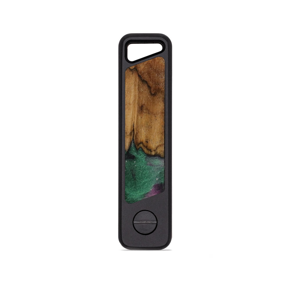 A sleek and rugged keyholder machined from a solid block of aluminum with unique inlay. It's lightweight, ultra-durable, and built to keep your keys organized without the jingle. Holds up to 4 keys in a compact, no-bulk design. Just unscrew, slide your keys on, and tighten it back up. Removable clip on reverse side.