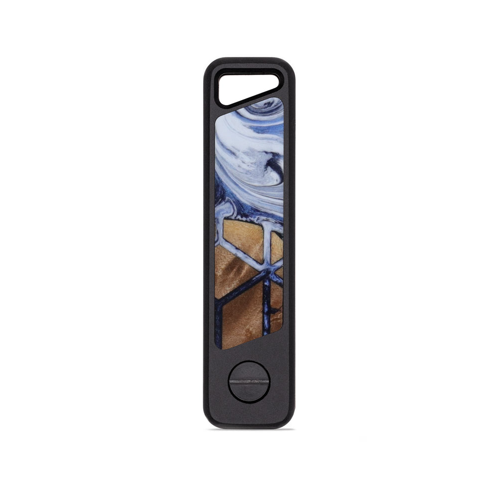 A sleek and rugged keyholder machined from a solid block of aluminum with unique inlay. It's lightweight, ultra-durable, and built to keep your keys organized without the jingle. Holds up to 6 keys in a compact, no-bulk design. Just unscrew, slide your keys on, and tighten it back up. Removable clip on reverse side.