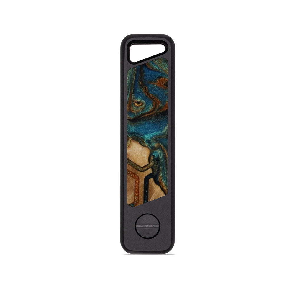 A sleek and rugged keyholder machined from a solid block of aluminum with unique inlay. It's lightweight, ultra-durable, and built to keep your keys organized without the jingle. Holds up to 6 keys in a compact, no-bulk design. Just unscrew, slide your keys on, and tighten it back up. Removable clip on reverse side.