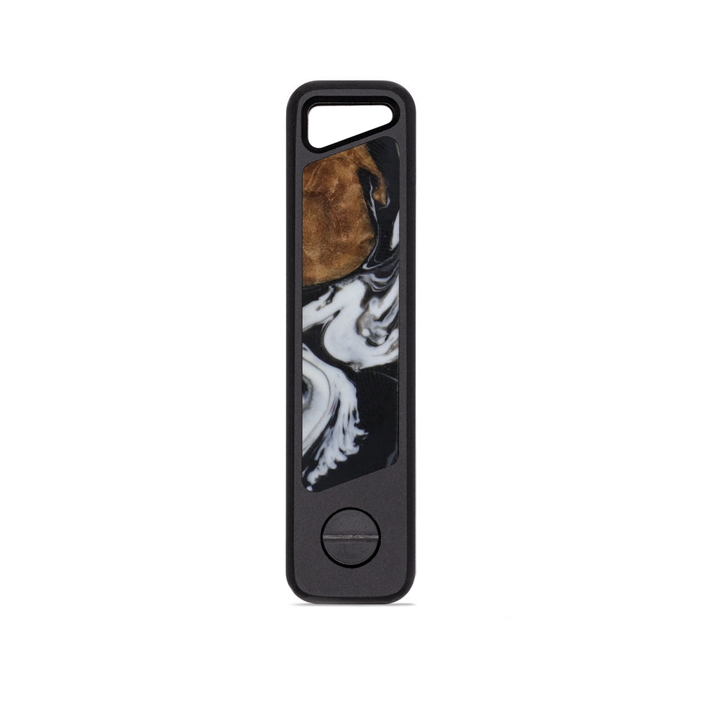 A sleek and rugged keyholder machined from a solid block of aluminum with unique inlay. It's lightweight, ultra-durable, and built to keep your keys organized without the jingle. Holds up to 6 keys in a compact, no-bulk design. Just unscrew, slide your keys on, and tighten it back up. Removable clip on reverse side.