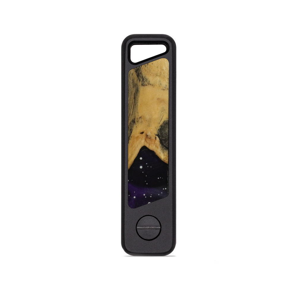 A sleek and rugged keyholder machined from a solid block of aluminum with unique inlay. It's lightweight, ultra-durable, and built to keep your keys organized without the jingle. Holds up to 4 keys in a compact, no-bulk design. Just unscrew, slide your keys on, and tighten it back up. Removable clip on reverse side.