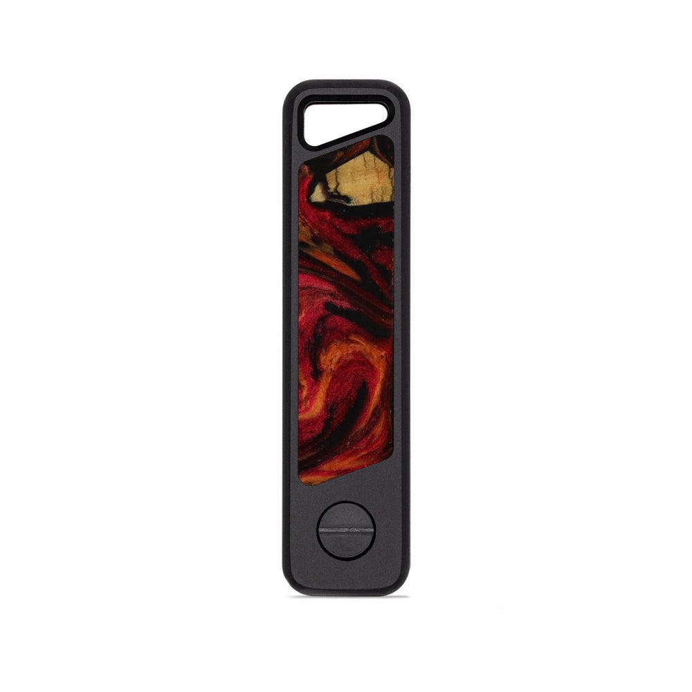 A sleek and rugged keyholder machined from a solid block of aluminum with unique inlay. It's lightweight, ultra-durable, and built to keep your keys organized without the jingle. Holds up to 4 keys in a compact, no-bulk design. Just unscrew, slide your keys on, and tighten it back up. Removable clip on reverse side.