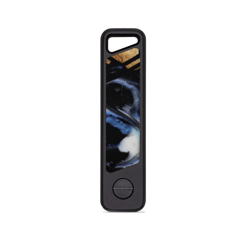 A sleek and rugged keyholder machined from a solid block of aluminum with unique inlay. It's lightweight, ultra-durable, and built to keep your keys organized without the jingle. Holds up to 4 keys in a compact, no-bulk design. Just unscrew, slide your keys on, and tighten it back up. Removable clip on reverse side.