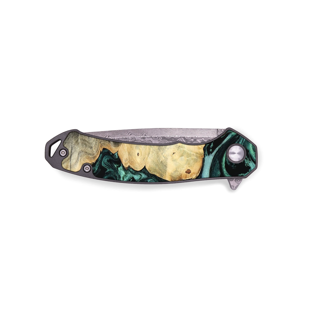 • Materials: Burl Wood, Resin, Damascus Stainless Steel
