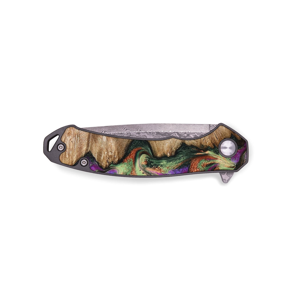 • Materials: Burl Wood, Resin, Damascus Stainless Steel
