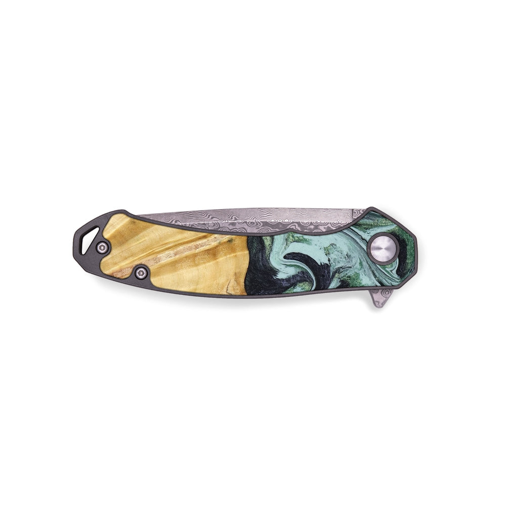 • Materials: Burl Wood, Resin, Damascus Stainless Steel