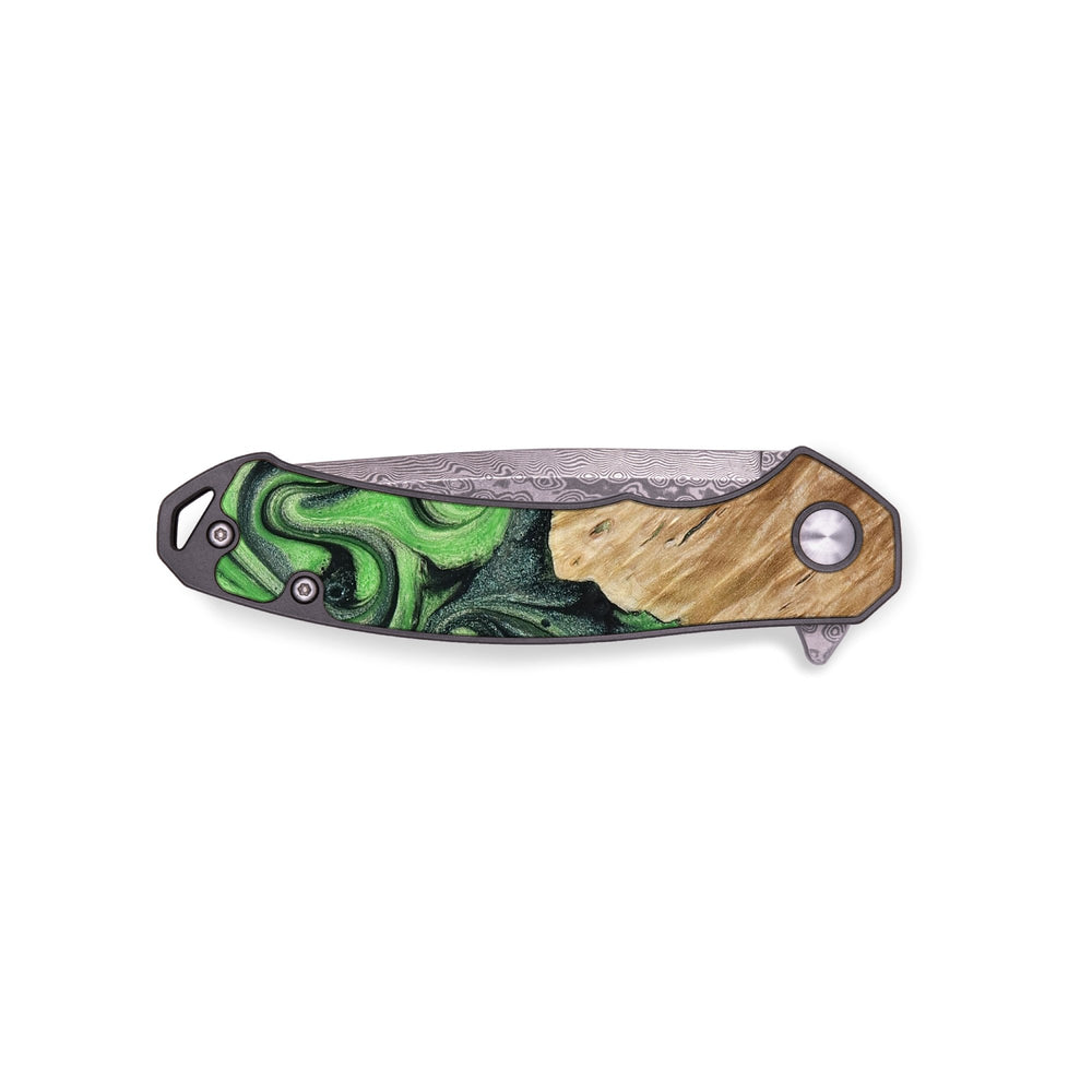 • Materials: Burl Wood, Resin, Damascus Stainless Steel