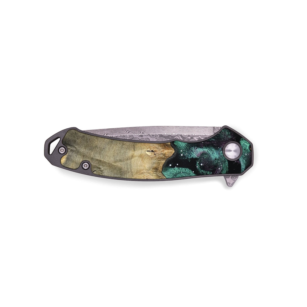 • Materials: Burl Wood, Resin, Damascus Stainless Steel