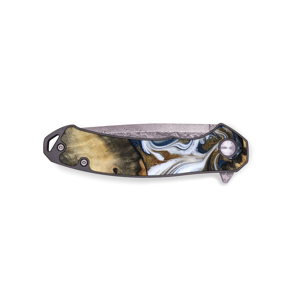 - Materials: Burl Wood, Resin, Damascus Stainless Steel