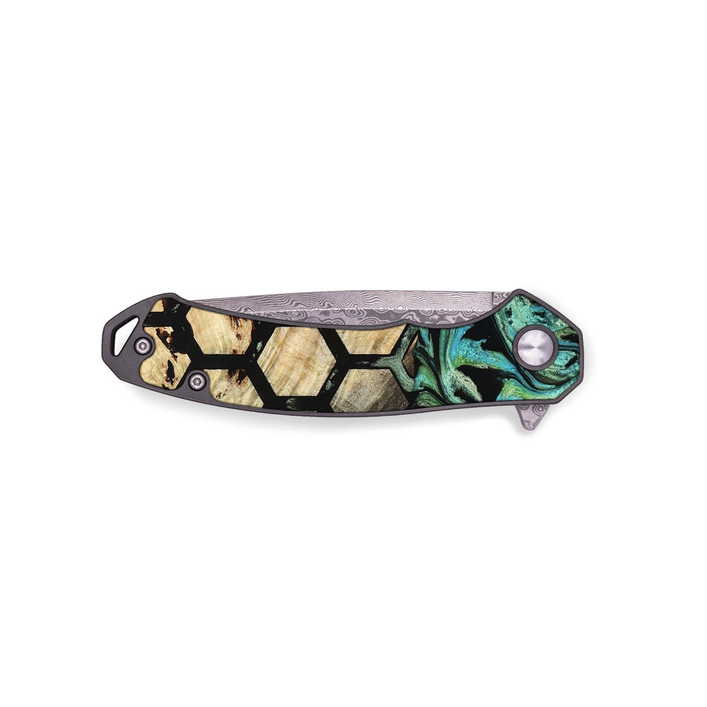• Materials: Burl Wood, Resin, Damascus Stainless Steel