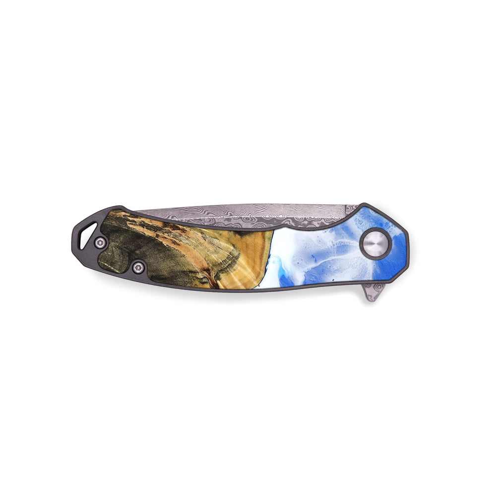• Materials: Burl Wood, Resin, Damascus Stainless Steel