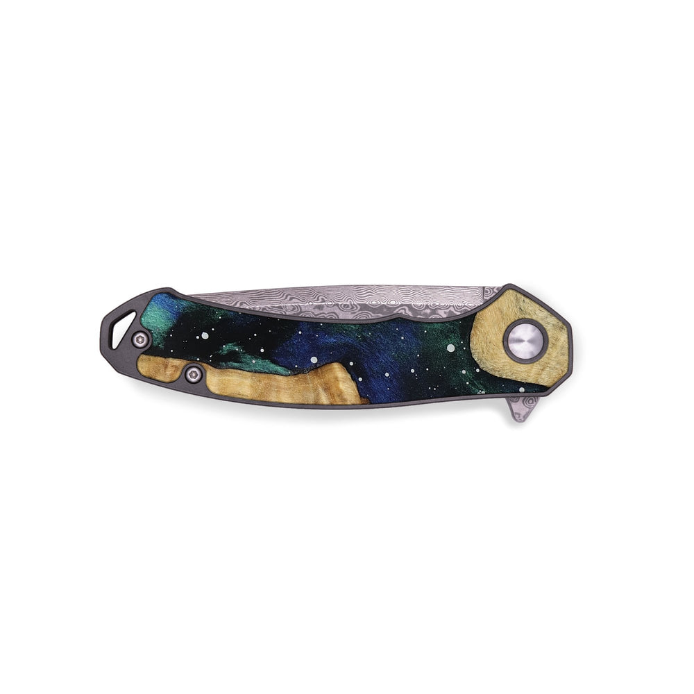 • Materials: Burl Wood, Resin, Damascus Stainless Steel