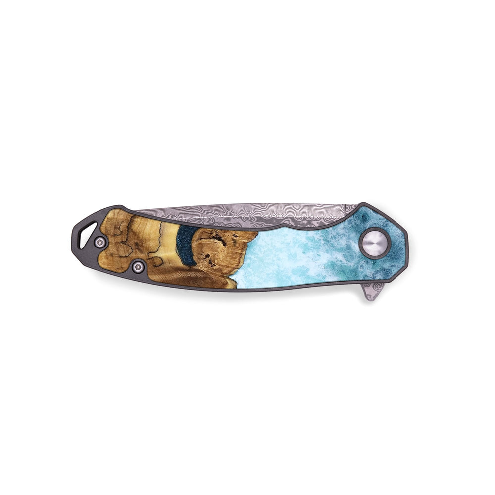• Materials: Burl Wood, Resin, Damascus Stainless Steel