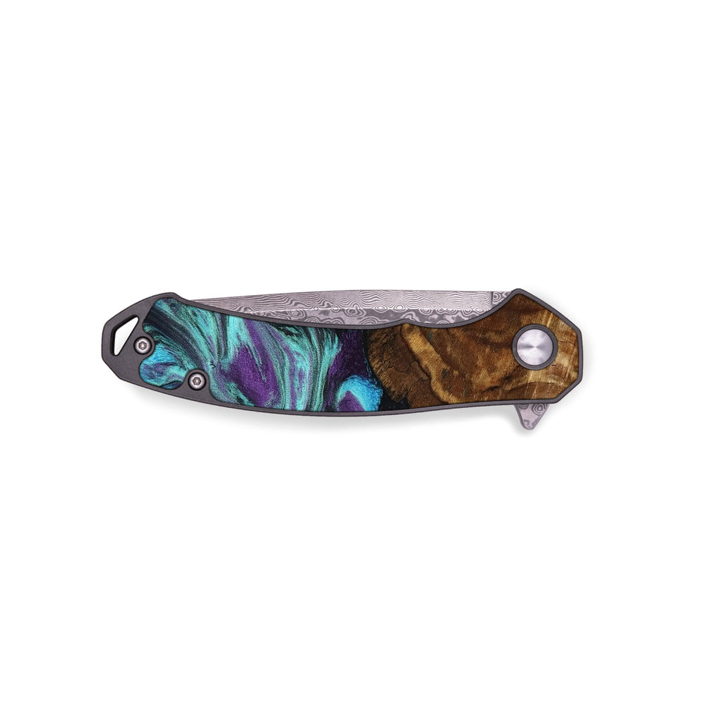 • Materials: Burl Wood, Resin, Damascus Stainless Steel