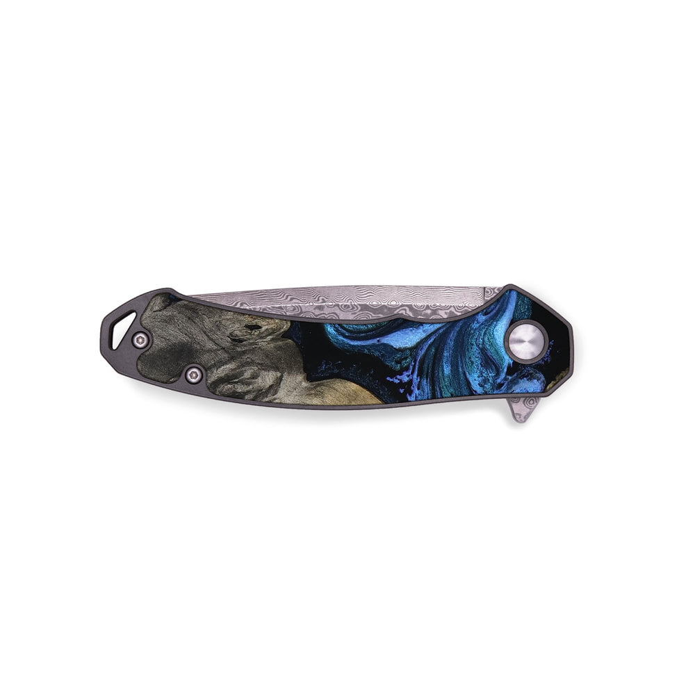 - Materials: Burl Wood, Resin, Damascus Stainless Steel