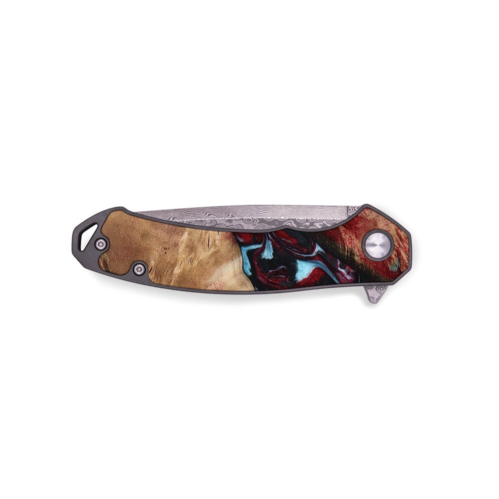 • Materials: Burl Wood, Resin, Damascus Stainless Steel