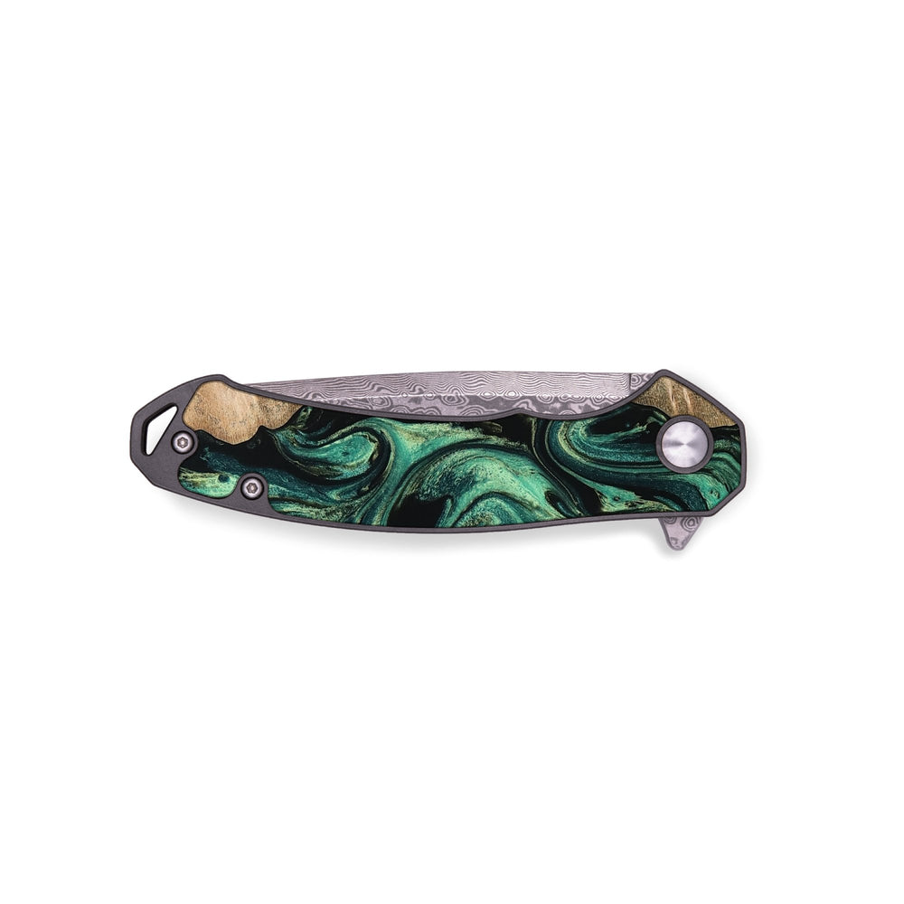 • Materials: Burl Wood, Resin, Damascus Stainless Steel