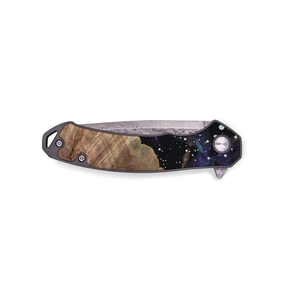 • Materials: Burl Wood, Resin, Damascus Stainless Steel