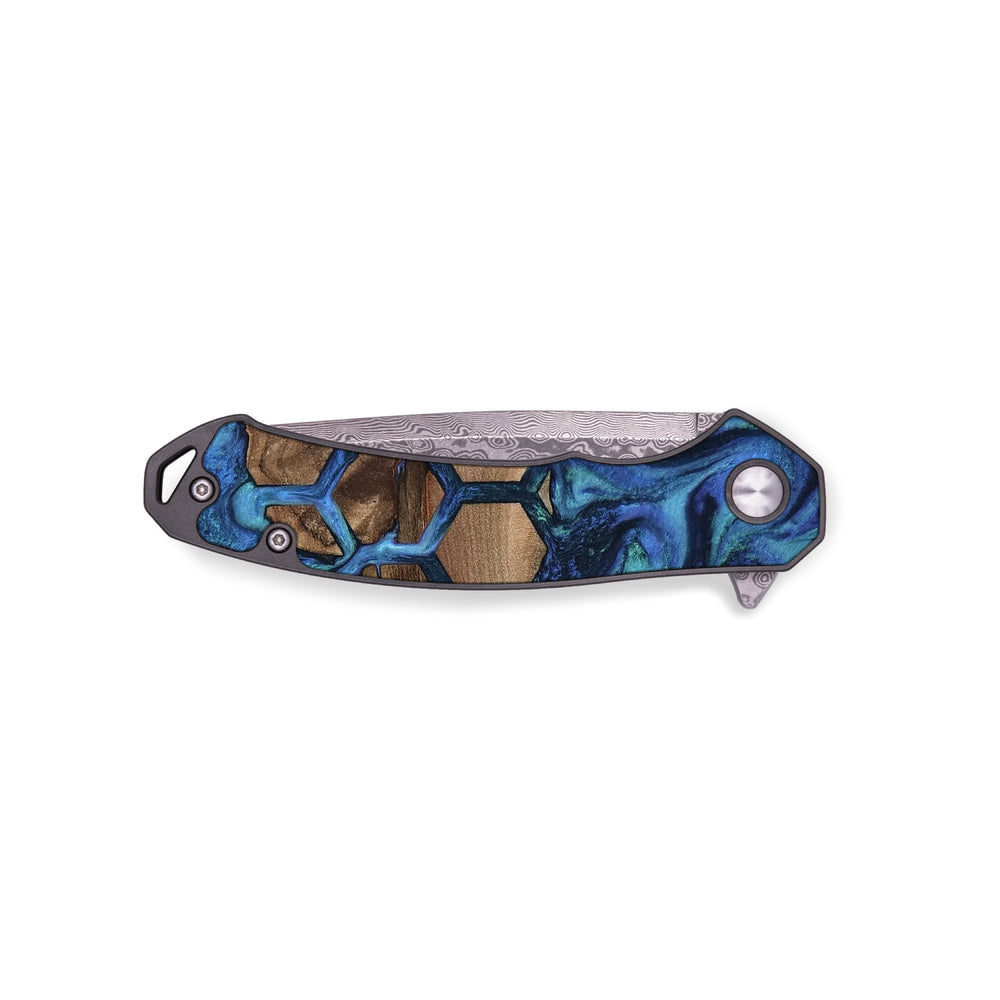 • Materials: Burl Wood, Resin, Damascus Stainless Steel