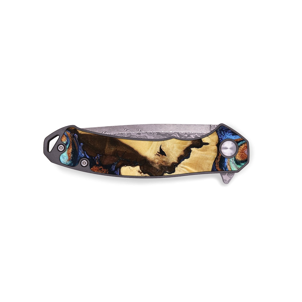 • Materials: Burl Wood, Resin, Damascus Stainless Steel