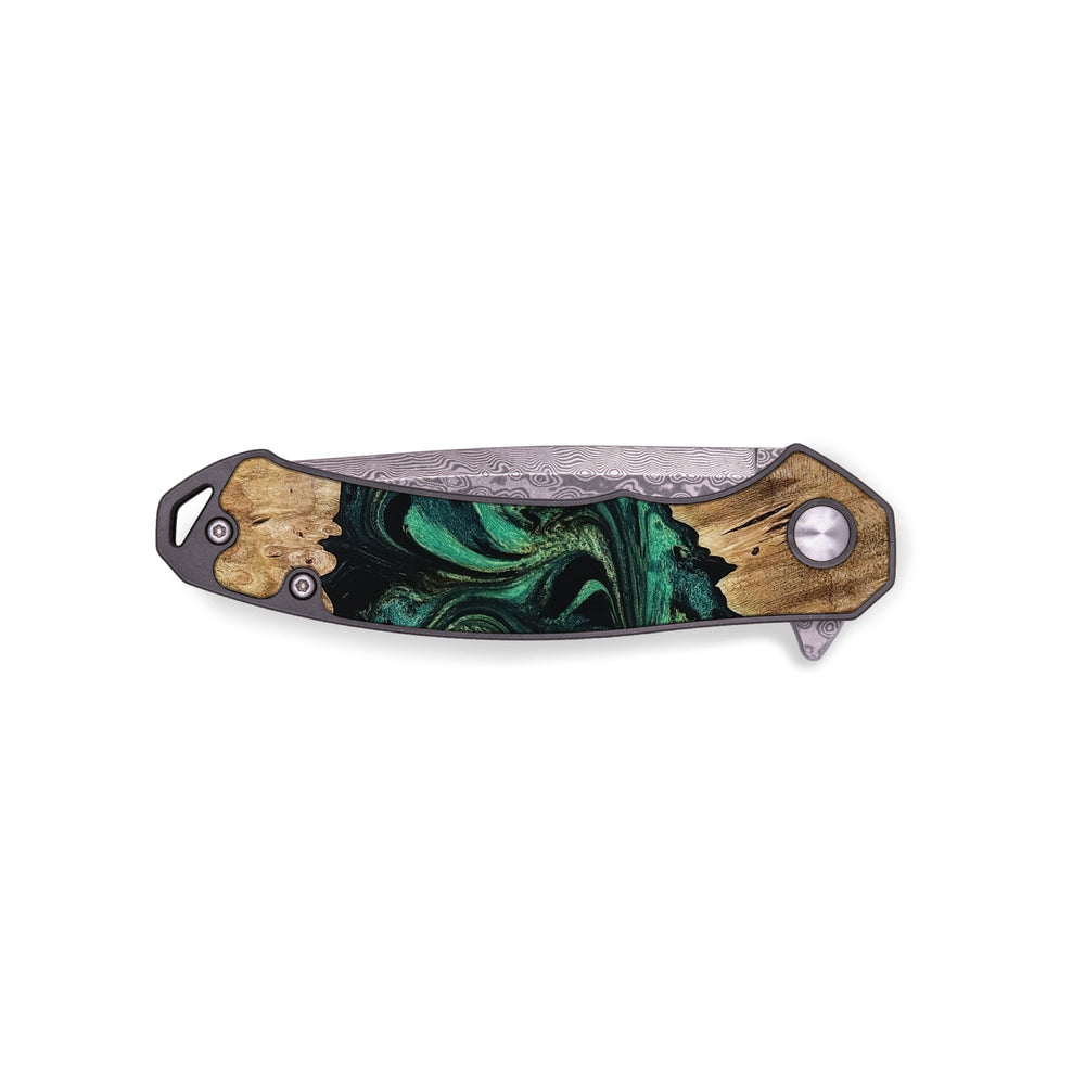 • Materials: Burl Wood, Resin, Damascus Stainless Steel