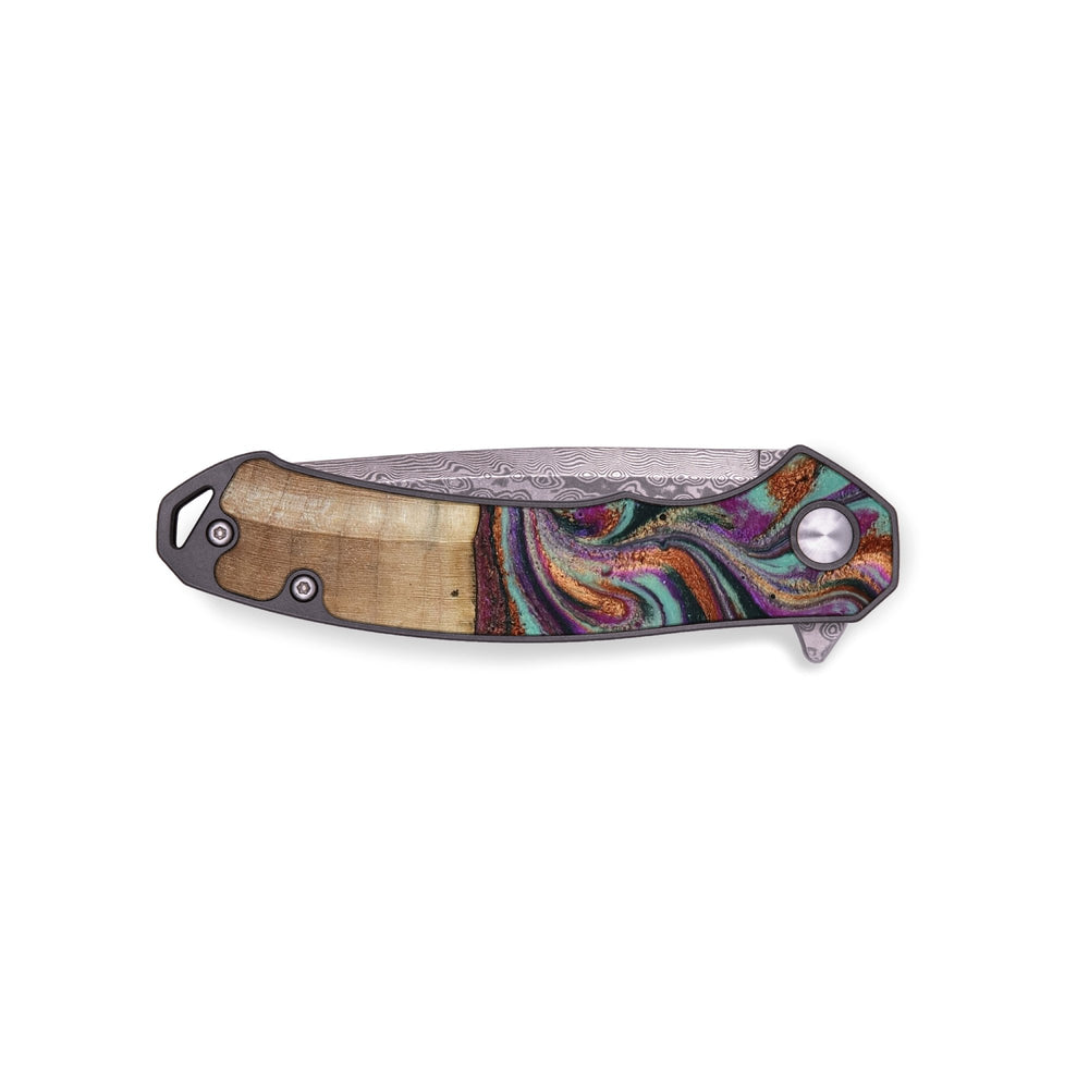 • Materials: Burl Wood, Resin, Damascus Stainless Steel