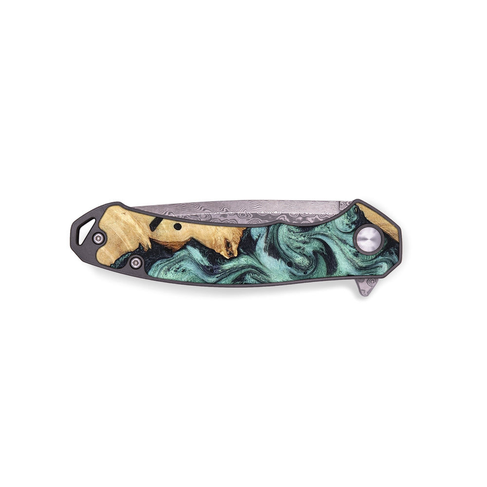 • Materials: Burl Wood, Resin, Damascus Stainless Steel