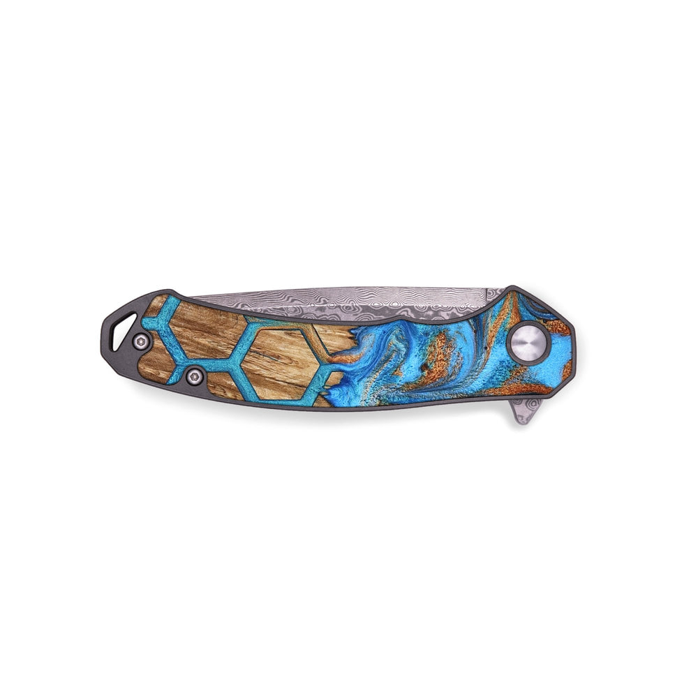 • Materials: Burl Wood, Resin, Damascus Stainless Steel