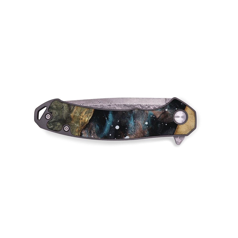 • Materials: Burl Wood, Resin, Damascus Stainless Steel