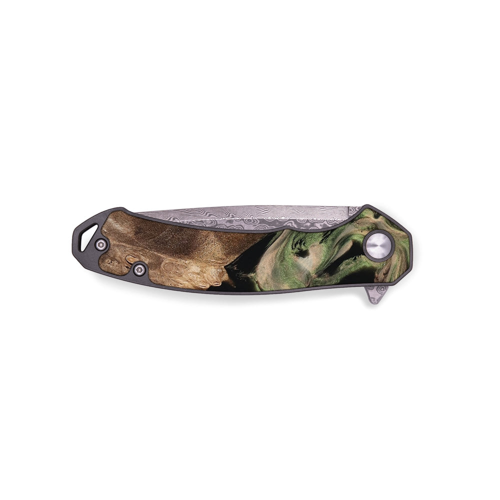 • Materials: Burl Wood, Resin, Damascus Stainless Steel