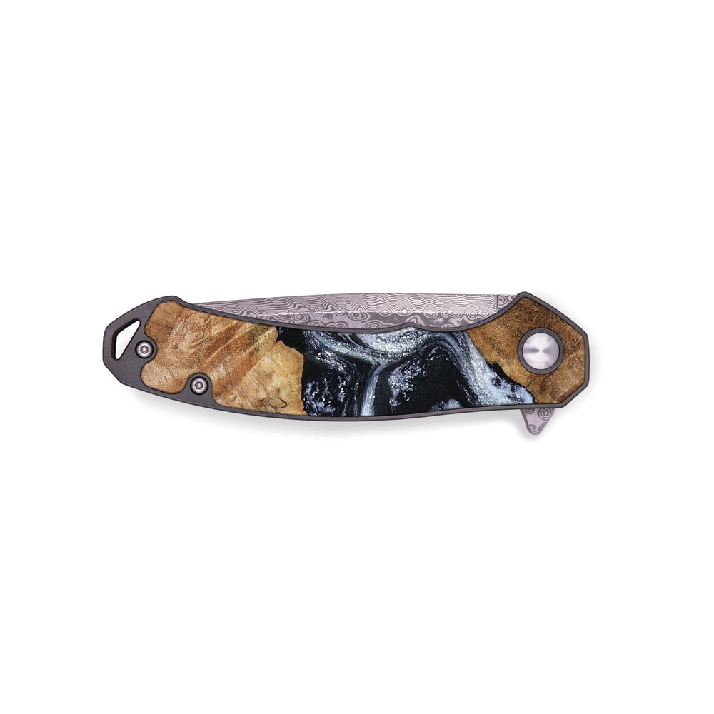 • Materials: Burl Wood, Resin, Damascus Stainless Steel