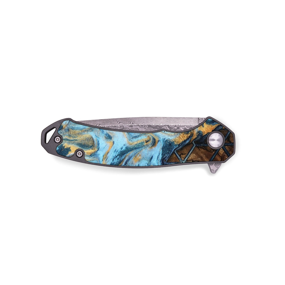 • Materials: Burl Wood, Resin, Damascus Stainless Steel