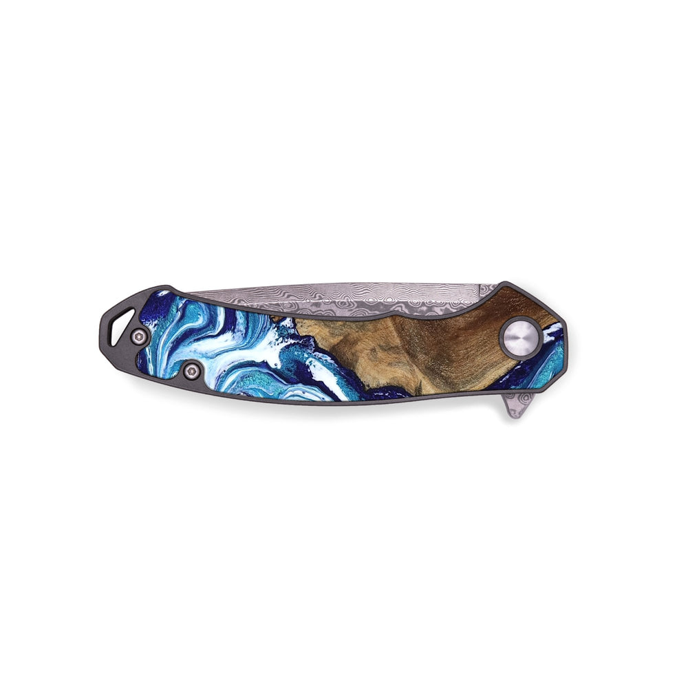 • Materials: Burl Wood, Resin, Damascus Stainless Steel