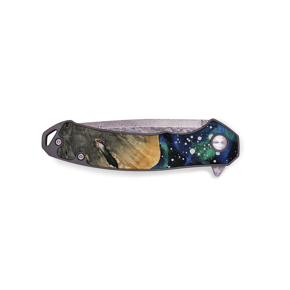 • Materials: Burl Wood, Resin, Damascus Stainless Steel
