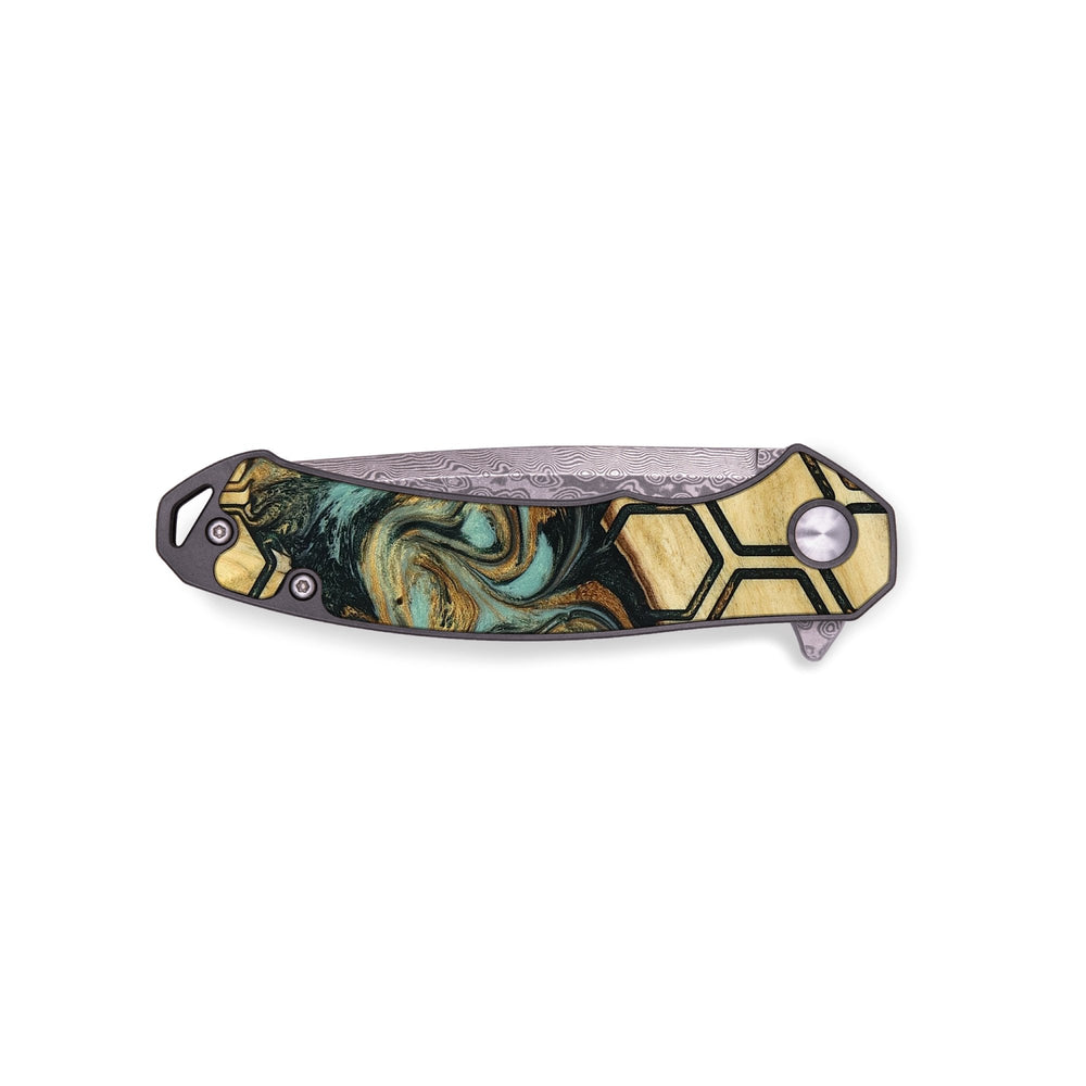 • Materials: Burl Wood, Resin, Damascus Stainless Steel