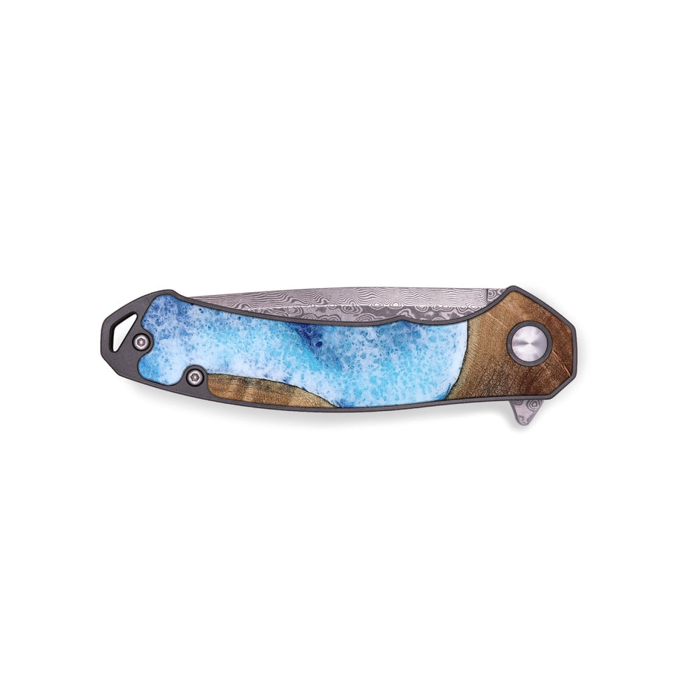 • Materials: Burl Wood, Resin, Damascus Stainless Steel