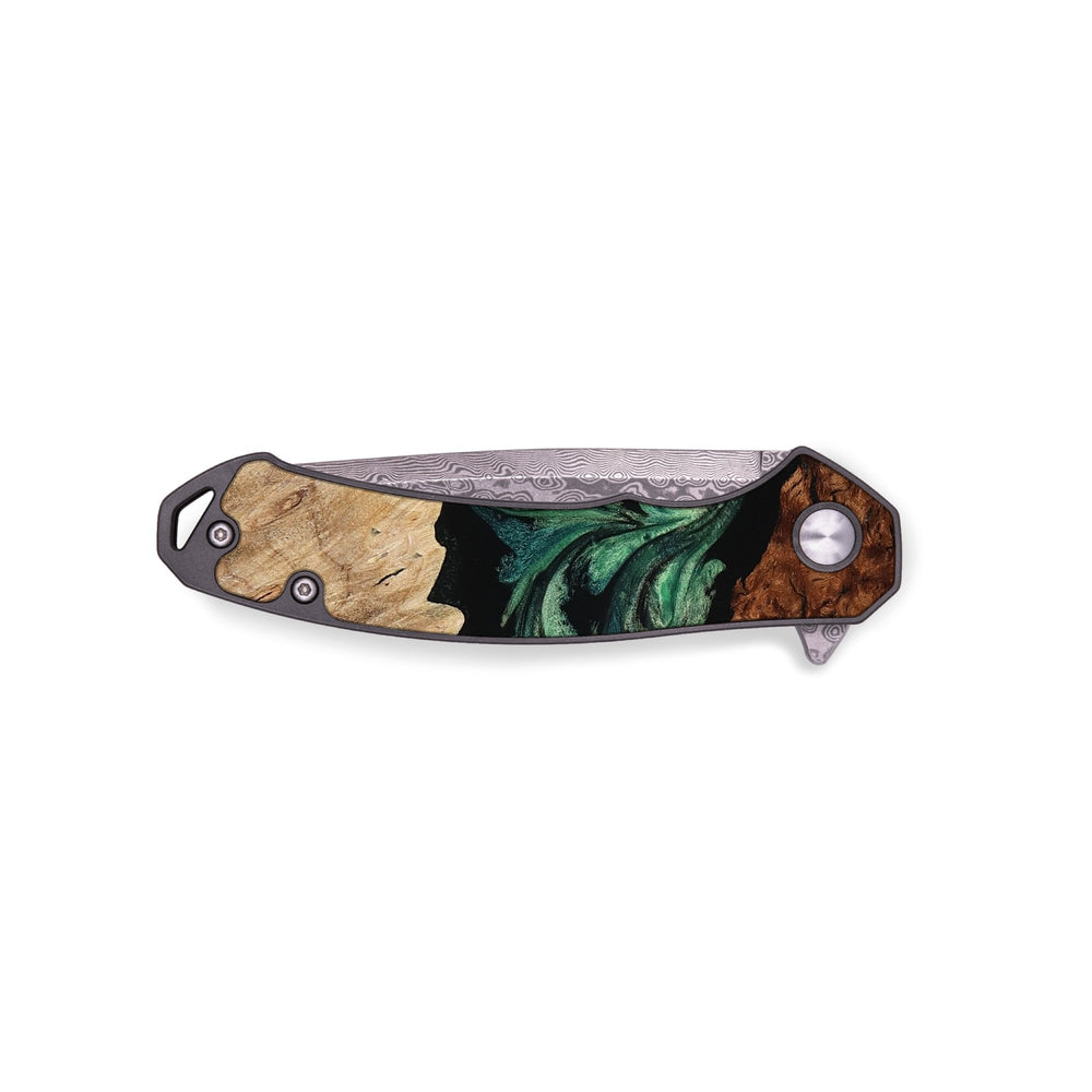 • Materials: Burl Wood, Resin, Damascus Stainless Steel