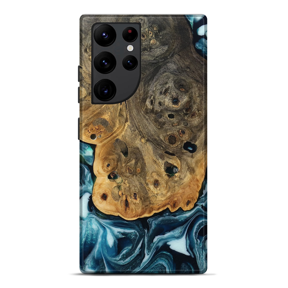 Our Live Edge cases are made from an amazing combination of stabilized wood burl and colored resin. Our stabilization process hardens the wood to protect against cracks and breaks. We do every step of the process at our shop in Northern Indiana. Perfectly fits the Galaxy S22 Ultra.
