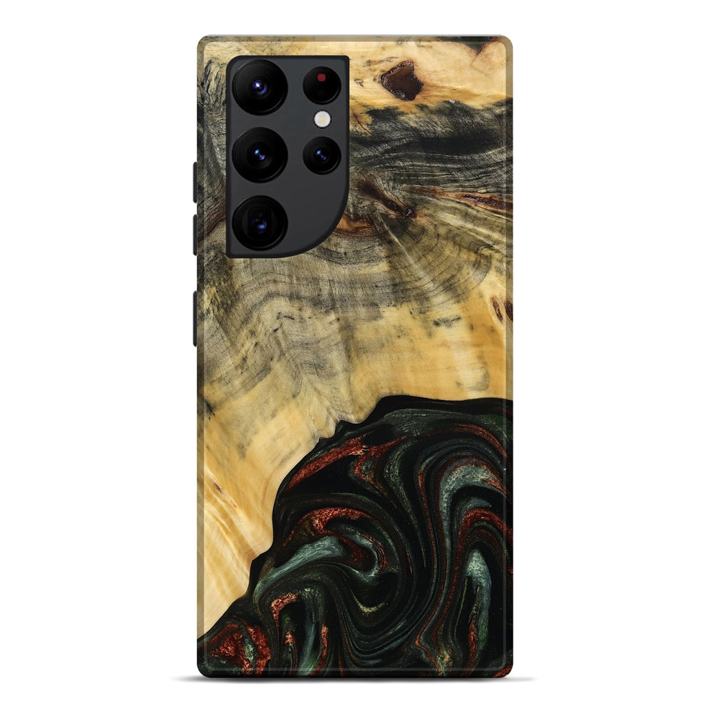 Our Live Edge cases are made from an amazing combination of stabilized wood burl and colored resin. Our stabilization process hardens the wood to protect against cracks and breaks. We do every step of the process at our shop in Northern Indiana. Perfectly fits the Galaxy S22 Ultra.