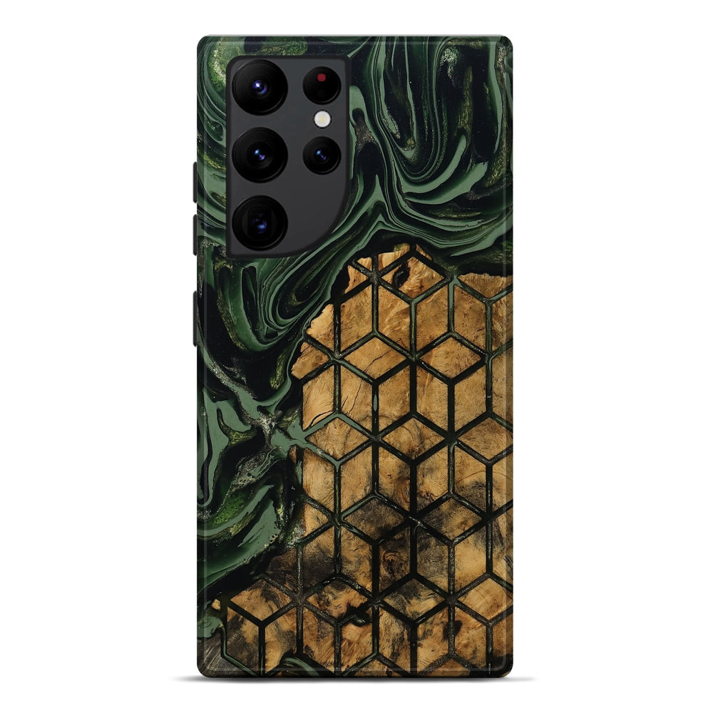 Our Live Edge cases are made from an amazing combination of stabilized wood burl and colored resin. Our stabilization process hardens the wood to protect against cracks and breaks. We do every step of the process at our shop in Northern Indiana. Perfectly fits the Galaxy S22 Ultra.