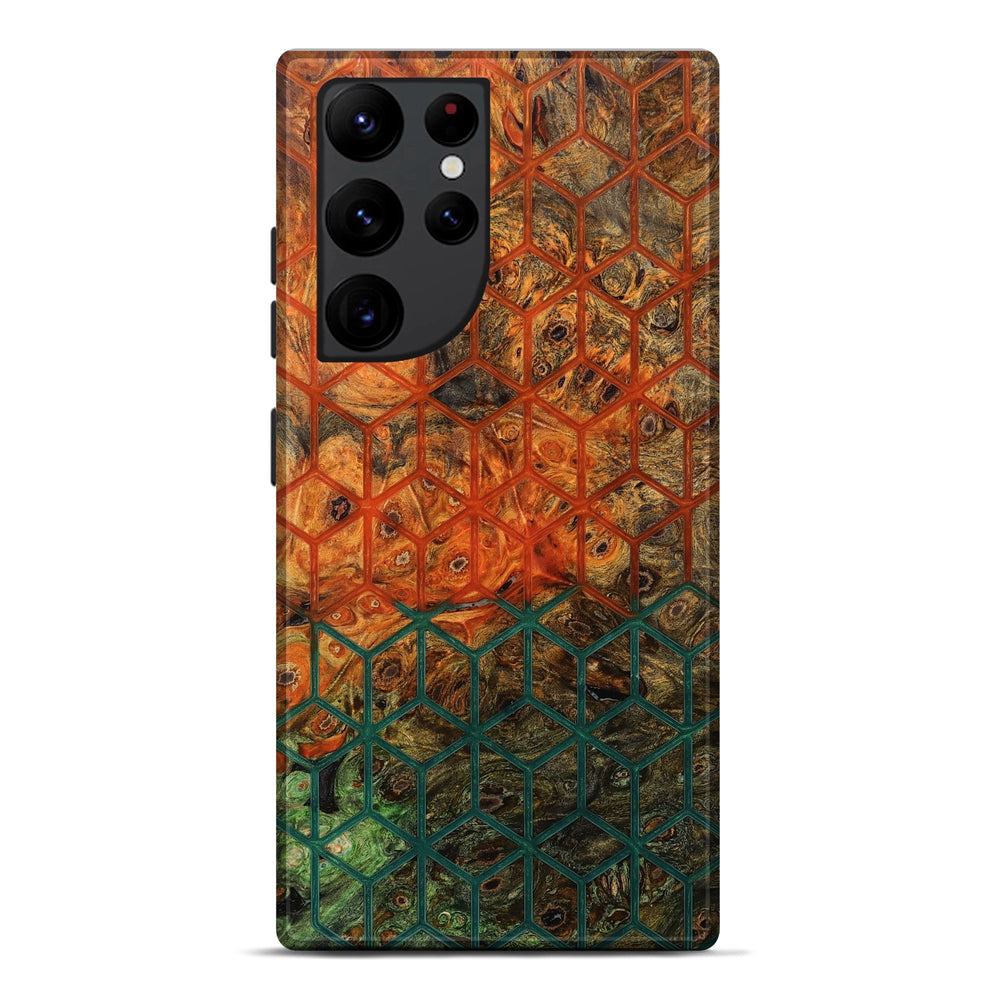 Our Live Edge cases are made from an amazing combination of stabilized wood burl and colored resin. Our stabilization process hardens the wood to protect against cracks and breaks. We do every step of the process at our shop in Northern Indiana. Perfectly fits the Galaxy S22 Ultra.