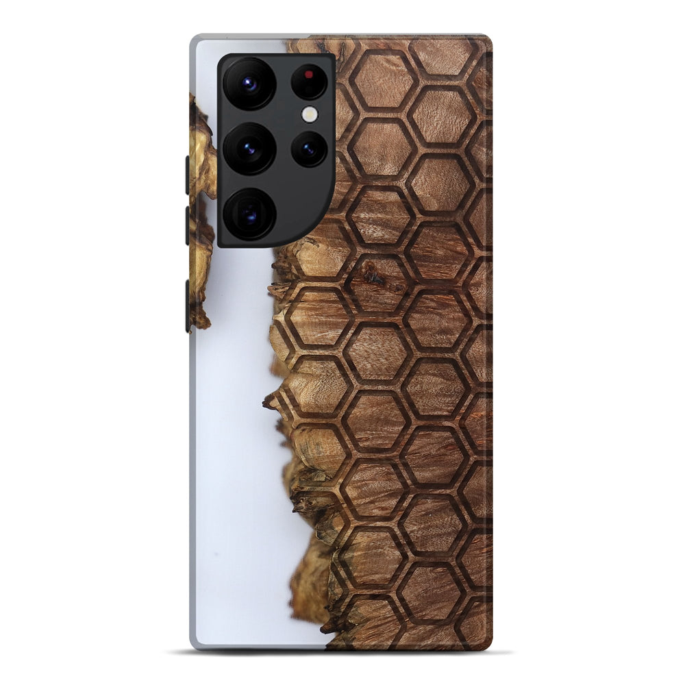 Our Live Edge cases are made from an amazing combination of stabilized wood burl and colored resin. Our stabilization process hardens the wood to protect against cracks and breaks. We do every step of the process at our shop in Northern Indiana. Perfectly fits the Galaxy S22 Ultra.