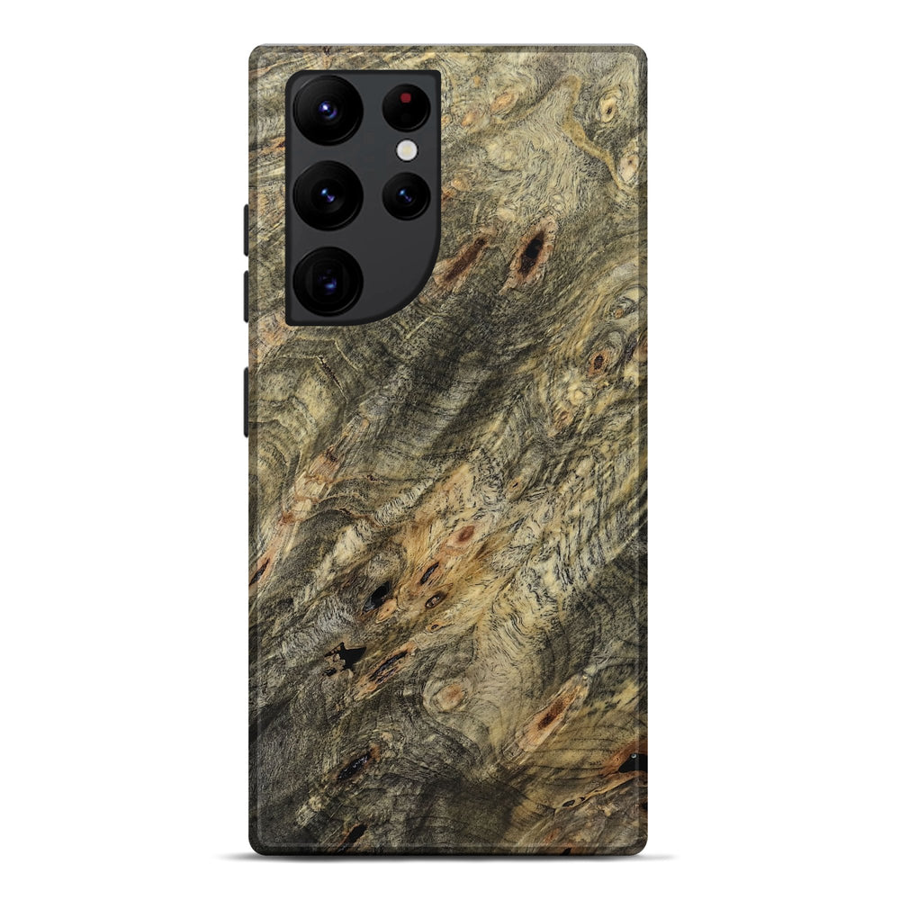Our Live Edge cases are made from an amazing combination of stabilized wood burl and colored resin. Our stabilization process hardens the wood to protect against cracks and breaks. We do every step of the process at our shop in Northern Indiana. Perfectly fits the Galaxy S22 Ultra.