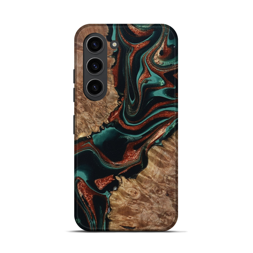 Our Live Edge cases are made from an amazing combination of stabilized wood burl and colored resin. Our stabilization process hardens the wood to protect against cracks and breaks. We do every step of the process at our shop in Northern Indiana. Perfectly fits the Galaxy S23.