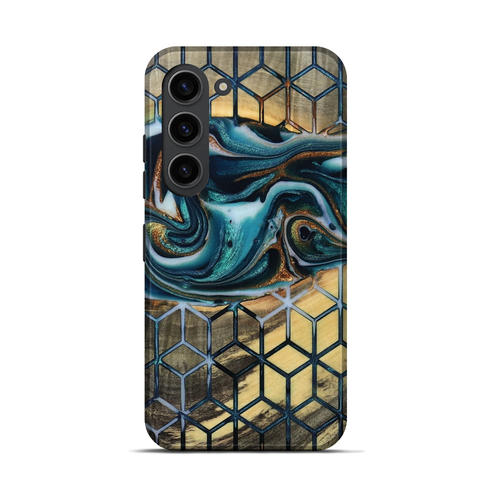 Our Live Edge cases are made from an amazing combination of stabilized wood burl and colored resin. Our stabilization process hardens the wood to protect against cracks and breaks. We do every step of the process at our shop in Northern Indiana. Perfectly fits the Galaxy S23.
