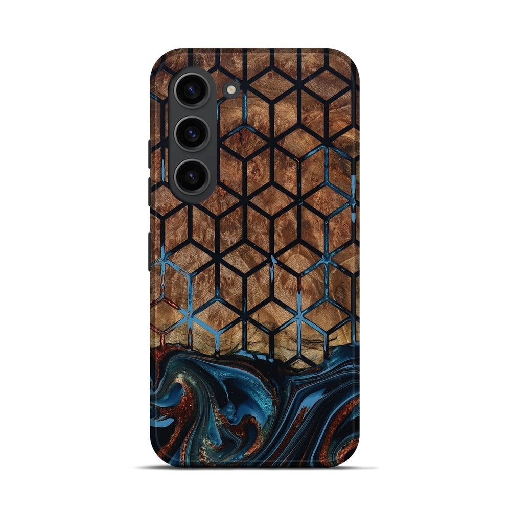Our Live Edge cases are made from an amazing combination of stabilized wood burl and colored resin. Our stabilization process hardens the wood to protect against cracks and breaks. We do every step of the process at our shop in Northern Indiana. Perfectly fits the Galaxy S23.
